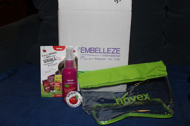 Recebi o meu primeiro produto maravilhoso, juntamente com um necessaire e um crachá da Novex.